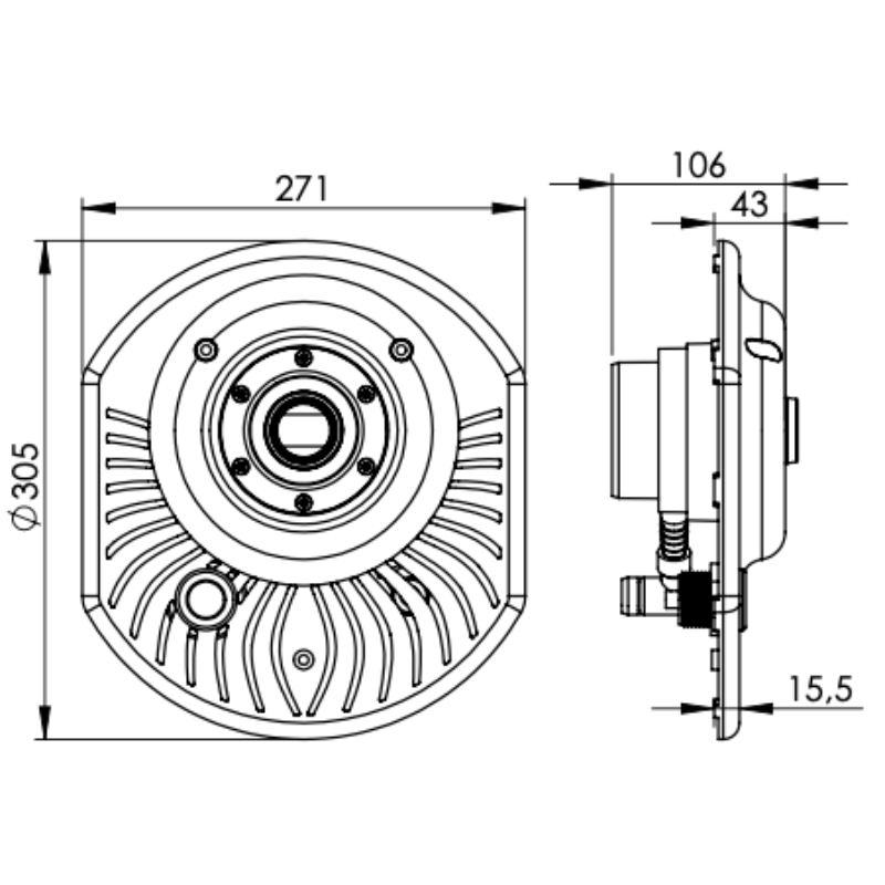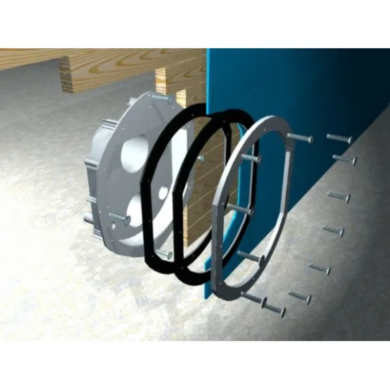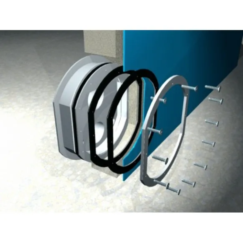- Pièce à sceller Ø 63/75 mm et 2 choix possibles* : standard avec contre bride arrière pour structure béton et coque OU à fixer sur une paroi pour structure panneaux