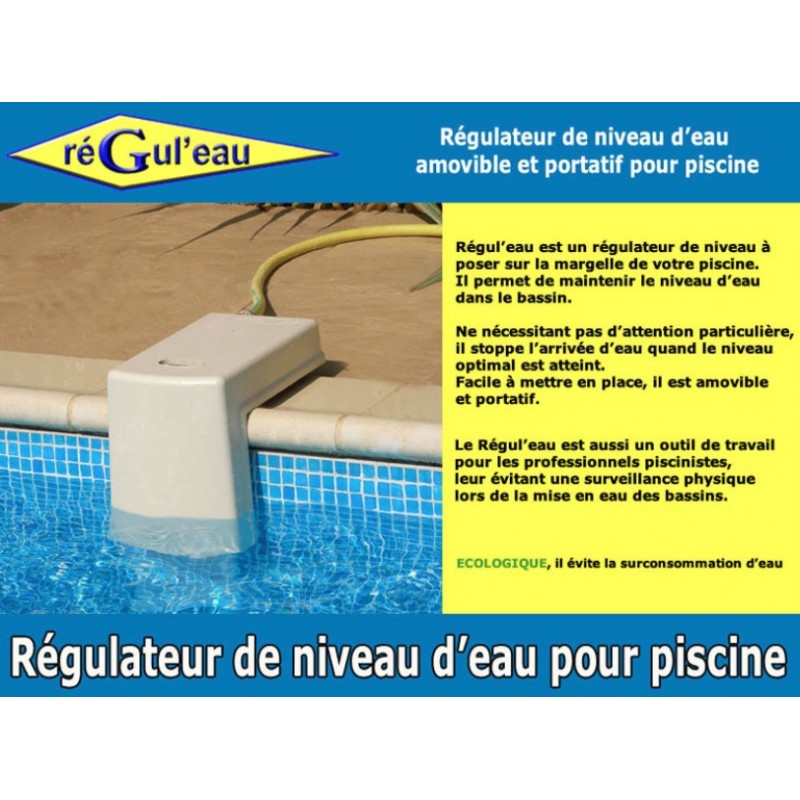 Optez pour le Régulateur de niveau d’eau amovible Régul’Eaupermet le remplissage automatique d’eau de votre piscine sans la surveiller, l’eau s’arrête automatiquement quand le niveau est atteint.