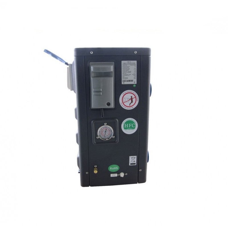 La pompe à chaleur Pure est équipé d’un échangeur en PVC et titane, d’un évaporateur recouvert d’un film hydrophile et possède un affichage intégré latéral.