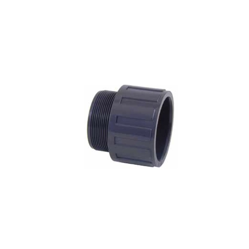 L’embout fileté en PVC pression est un raccord polyvalent conçu pour connecter un tuyau rigide à un composant filet : il possède une extrémité femelle à coller et une extrémité mâle à visser. Selon le modèle, il est proposé en plusieurs dimensions : Ø 32 mm × 1″, Ø 50 mm × 1″ ½, Ø 50 mm × 2″, et Ø 63 mm × 2″.