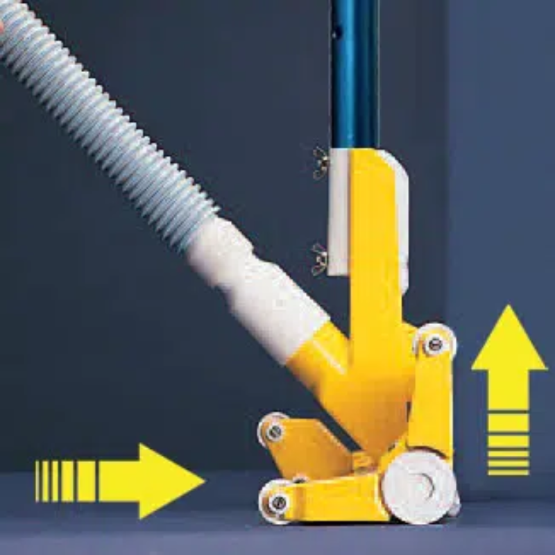 Depuis l’angle, la tête remonte le long du mur sans perte d’efficacité. Elle fonctionne aussi bien sur les surfaces verticales qu’horizontales, sans nécessiter de réglage.