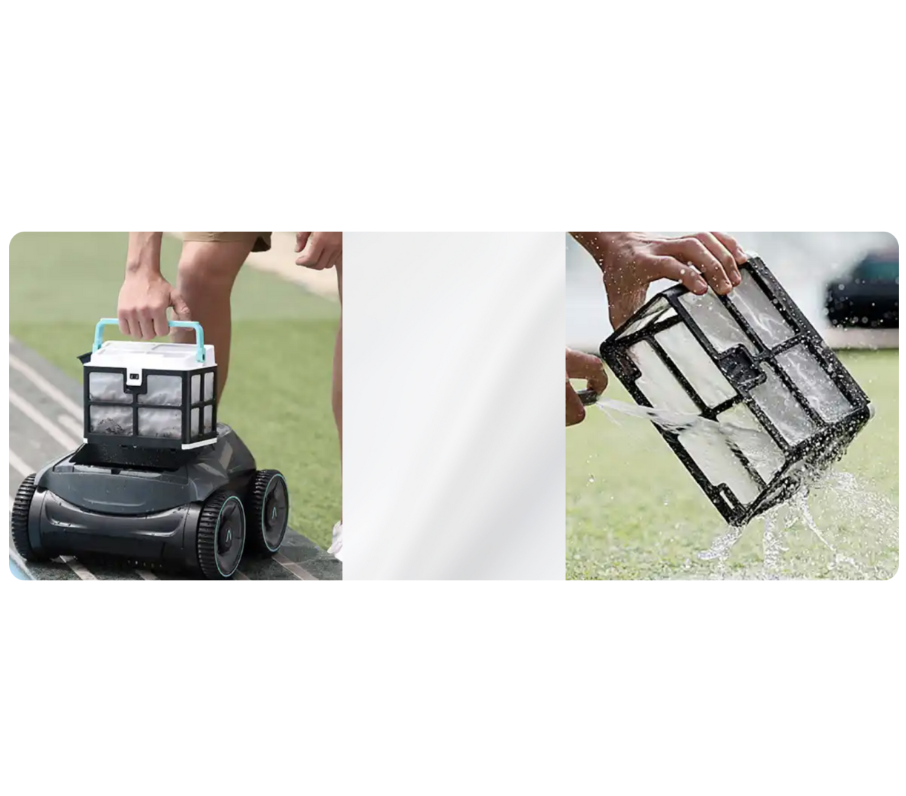 Équipé d’un système à quatre roues motrices, il grimpe sans effort aux parois et assure un brossage efficace de la ligne d’eau. Trois programmes sont disponibles : Sol uniquement, Parois uniquement ou Automatique, pour un nettoyage sur mesure.