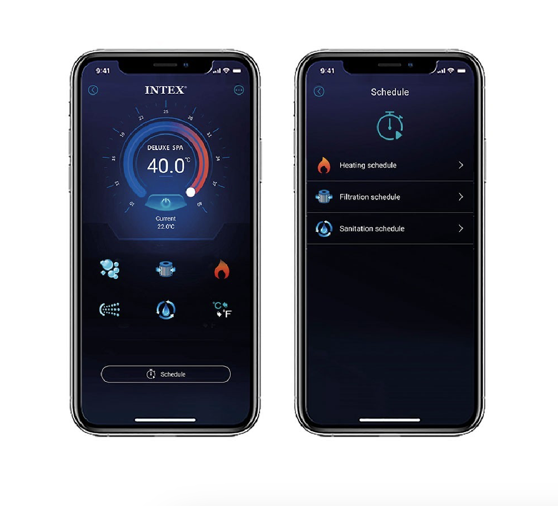 Application Wi-Fi dédiée pour contrôler la température, activer bulles et jets, gérer la filtration et le traitement au sel, même à distance