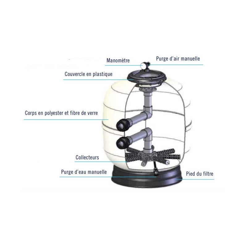 - Livrée avec kit complet : sonde redox, porte‑sonde, solution tampon, tuyaux (aspiration 2 m, refoulement 2 m), clapet d’injection et colliers de prise en charge