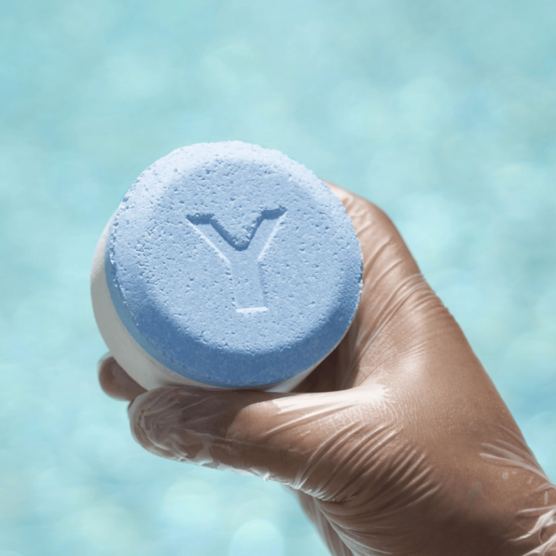 • Couche bleue (dissolution rapide) : traitement choc immédiat du bassin et du filtre